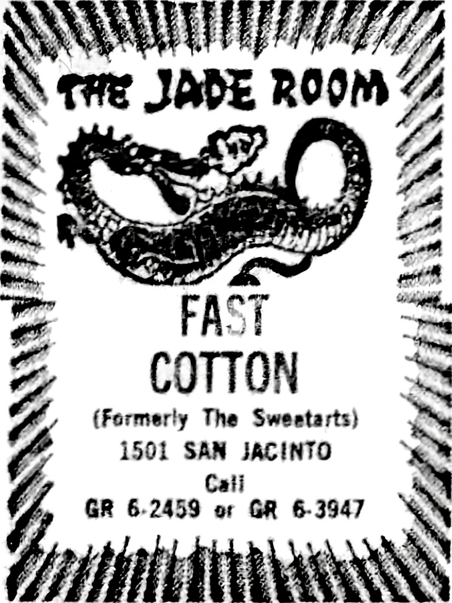 Fast Cotton was named for a greyhound dog that drummer Dwight Dow saw at a race track in Corpus Christi, Texas. Not sure whether Dwight bet on that dog, though.