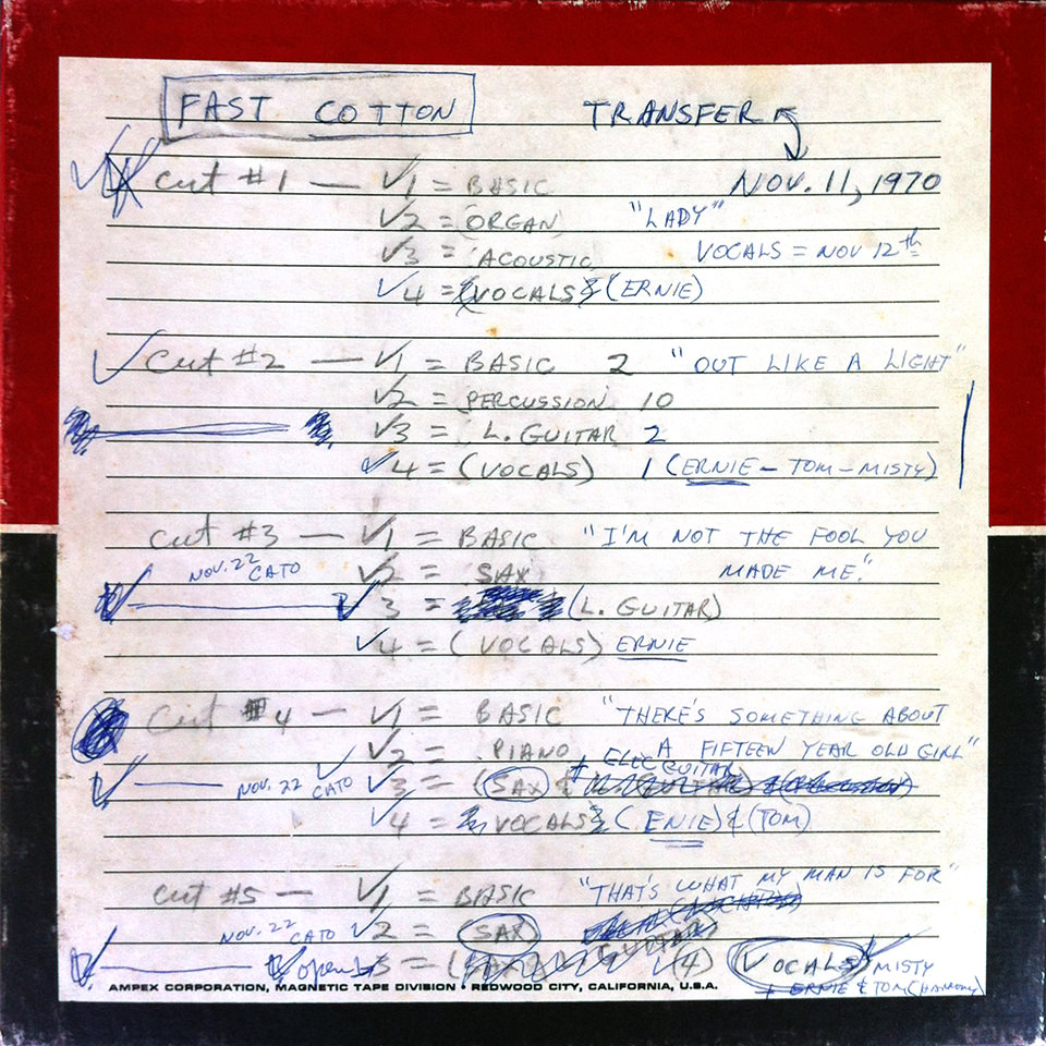 In November 1970, Fast Cotton recorded five songs for producer Bill Josey Sr. at Sonobeat’s Western Hills Drive studio in northwest Austin. All were solid, tight performances of original material. The only complete mixes we’ve found in the Sonobeat archives are monaural trial mixes made from the original half-inch 4-track session masters. From the five song, Bill Sr. and Ernie selected two for final mix downs as a potential Sonobeat 45 RPM stereo single release, but Fast Cotton unexpectedly broke up when Tom left to join the Peace Corps and Ernie moved to England, both within a month after wrapping the Sonobeat sessions. Without a band to support a release, Bill was forced to scrap plans for the single and shelve the tapes.
