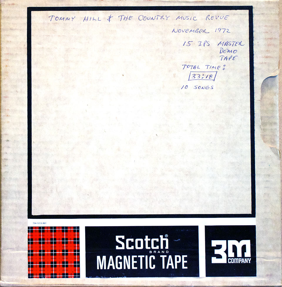 Tommy’s band went by many names. Coming into 1972, it was known as Tommy Hill and the Misfits. But Tommy started off the Sonobeat recording session by introducing the band as Tommy Hill and his Show Band. He also introduced the musicians who performed with him: Benny McArthur, George Rodriguez, Larry Gentry, Jess DeMaine (who recorded as a solo act with Sonobeat in 1972 and 1973), and Carl Goertz. However, Bill Sr. clearly marked the master tape box holding the band’s recordinga as Tommy Hill and the Country Music Revue and, indeed, no more than a month later, Austin-area nightclub newspaper ads were using the Country Music Revue name, sometimes misspelling Revue as Review. The band played Central Texas nightclubs and honky-tonks, including The Broken Spoke, The Rockin’ M, and Arkie’s Dessau, on a regular weekly schedule and, notably, performed at the 125th anniversary of the founding of Georgetown, Texas, in May 1973.
