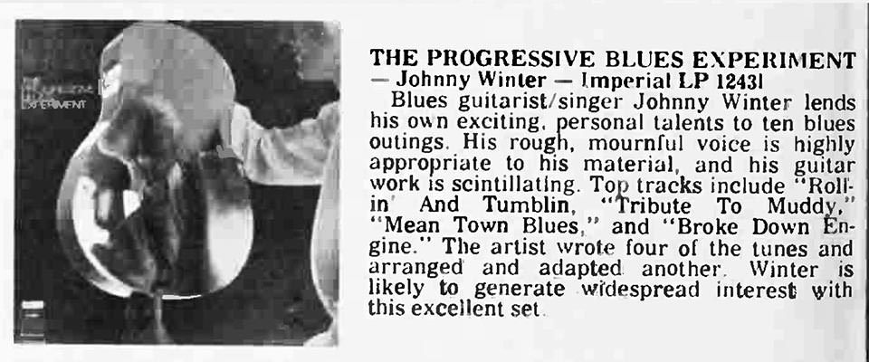 "“The Progressive Blues Experiment is a dense, rocking, concentrated barrage of kamikaze exercises in rocking blues and bluesy rock. The Progressive Blues Experiment was actually a better album than Johnny Winter [Johnny’s first Columbia album].”