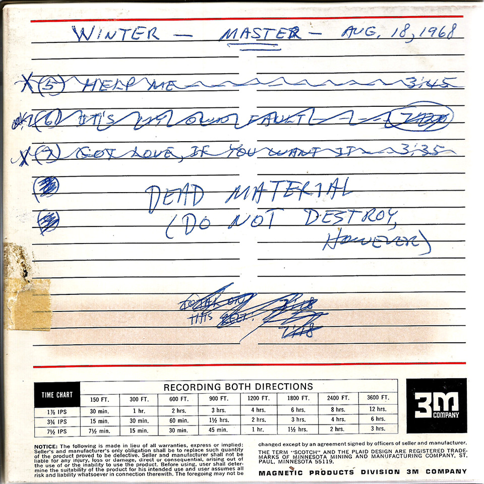 The August ’68 sessions with Johnny provided plenty of completed tracks from which the Sonobeat single was pulled. Only weeks after releasing the single, Sonobeat issued a limited edition white jacket advance pressing album consisting of ten tracks, including the two recorded at the Josey family home. Bill Josey Sr. named the album The Progressive Blues Experiment, inspired by his belief that Johnny’s music was blues-rock’s answer to the progressive rock movement that emerged at the end of the ’60s. The album tracks were culled from dozens of alternate takes and false starts; five tracks were original Winter compositions and five were covers. Sonobeat’s advance pressings were used to get early radio airplay and reviews and to market its recordings to larger national labels.